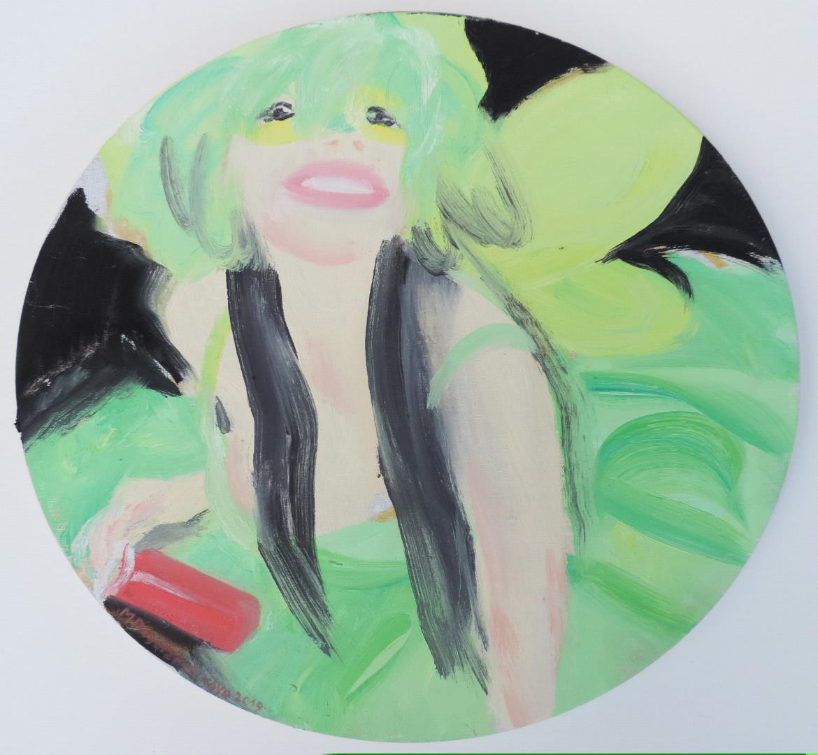 Maria Pogorzelska is interested in the youth. Here all the forces of life, joy, stupidity and future are gathered. In the series Girls it is partytime. Laughter, mischiefes, movement and burlesque, all lit by laughter and eroticism. The brush strokes mix and go together like the bodies depicted. Naked thighs, red lips, half-closed eyes. They party in the present, without thinking of any consequences, on the world that they will wake up to tomorrow, on the hangover. The party as well as the game gives a chance to leave everyday life, to feel free and that everything is possible.