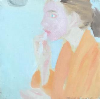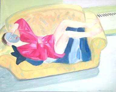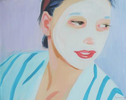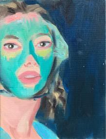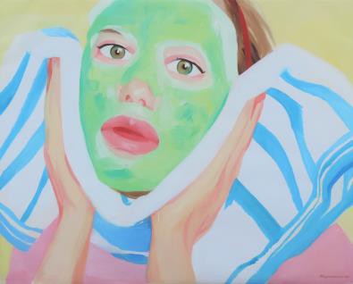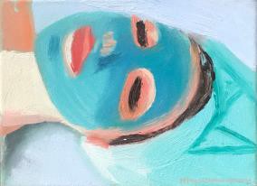 Sleeping girl with mud mask 100x120cm oil canvas2019