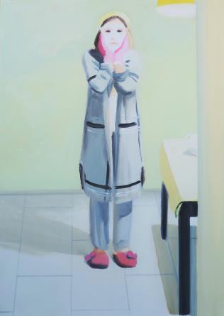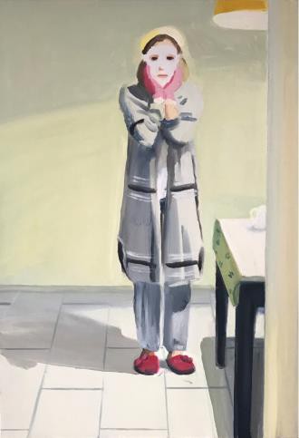Big green mask with pink bathrobe 150x150cm oil canvas 2019