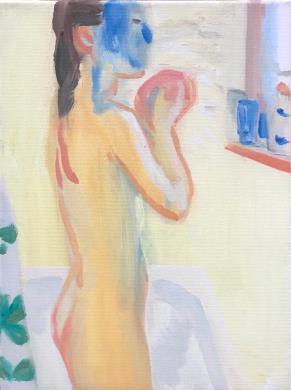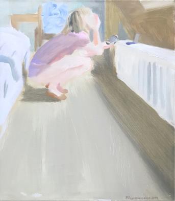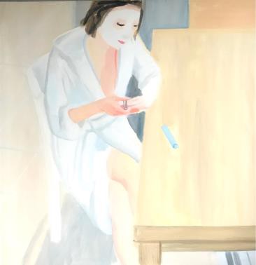 Private Zone occupies the space of individuality, immediacy, precise replication of a specific moment in a woman’s private life. Photographic memory and the use of “fleeting light” on surfaces – these are the main tools of the artist who works in the best traditions of “new realism”. Pieces in small format are deliberately and repeatedly used as studies for larger works, similar to the relationship between the negative and the final photo. A sort of “meta- morphosis of the étude” is displayed in a separate series of specific paintings that can be viewed at the exhibition. Hic et nunc.
